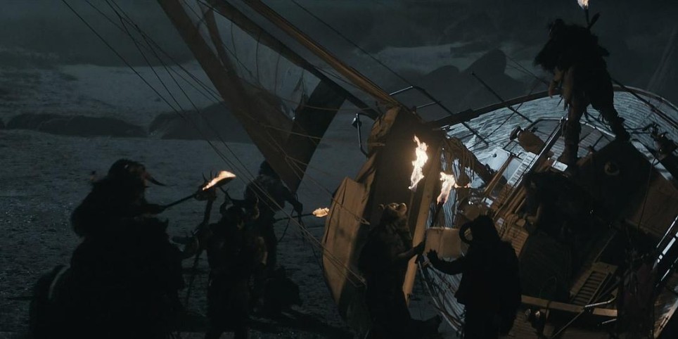 给卡萝尔做完简易手术后,达里尔发现有人来海岸边打野,这群手执火把、身着兽皮头骨的“野蛮人”一看就不好惹,他们把船上的物资都搬走不说,还把船砸坏了。
