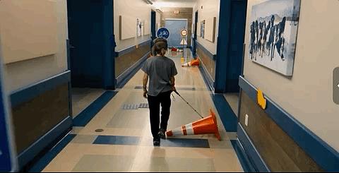 孩子们也开始接触导盲犬,并且练习蒙着眼睛靠盲杖行走。