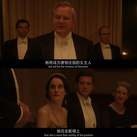 不过,当看到父亲在晚宴上当众宣布“她将成为唐顿庄园的女主人”时,我的内心还是无比欣慰的,由衷为她鼓掌——这是对她数年如一日为庄园历练成长、负重前行的家族认可,是象征克劳利家族放下包袱、告别唐顿,鼓起勇气、拥抱时代的重要里程碑。