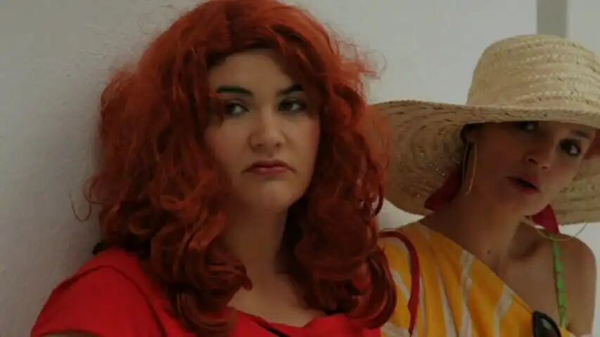 PL:我当然同意合作,但条件是不仅能帮忙剪辑已有素材,还要参与新素材的拍摄。我们想到将那些被让娜偷偷录制的“艺术赞助者”访谈搬演出来。我们分配了角色,并邀请了曾与让娜在剧院合作过的朋友玛琳·萨尔达纳:她钟爱各种滑稽装扮。我们决定让玛琳始终扮演那些权威机构的代表:官僚、赞助商;让娜始终扮演自己;而我则像莎士比亚喜剧中的弄臣,不断变换着立场:时而是让娜的制片人,时而是投资方助理,但总穿着同一套戏服。