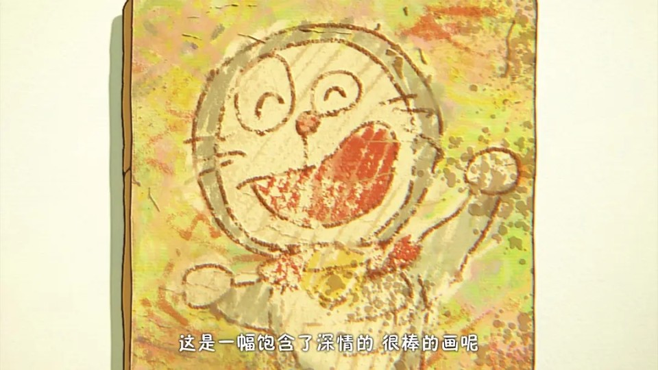 的确是近几年哆啦A梦剧场版中节奏最舒服、故事最丝滑、立意最完整的一部,在已有框架、剧情套路下将创意放大、让情感丰沛,四平八稳也能打动人。 这回大雄的奇遇发生在画世界中,穿画还不够,再接入穿越;纵向玩有些单薄,横向也得做文章。故事背景上来便十分开阔。 虽然情节发展依旧偏子供向,无非探索世界→遇上危机→打败BOSS,但内核全龄化,有个人成长,也上升到人类共同体。 大雄因画技不高自卑不敢落笔,在麦罗鼓励下勇于作画,虽然画迹普通,但出奇可爱,也在要紧关头拯救了王国。他心中一再生长的画魇也在爸爸由衷的称赞下如BOSS般溶解,电影很好地完成了由大落小的情感切换。 共同体层面,大伙对时空猎人的追击及对中世纪宝石名画的“只可远观不可亵玩”,无不体现出主创对文物的尊重(日本在文化输出为自正名这方面真有说法)。